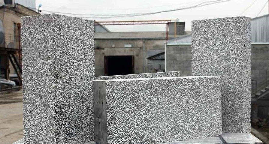 - Теплобетон – разновидность ячеистого бетона. В его состав входят гранулы полистирола. Но он недостаточно теплый, чтобы не нуждаться в дополнительном утеплении. При строительстве из крупных блоков может нарушаться их геометрия и возникать трещины.