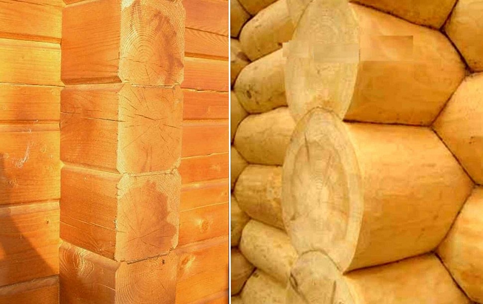- Бревно и брус. Это натуральный материал, не теряющий своей популярности. Стены из бревен не обязательно отделывать. Но если есть желание, то отделочный материал подойдет любой. Дома из бревен хорошо держат тепло, они долговечные и прочные. Заниматься отделочными работами можно не ранее, чем через полгода, потому что деревянные дома дают усадку. При соблюдении технологии строительства и использовании качественной, хорошо просушенной древесины дома из нее стоят десятилетия.