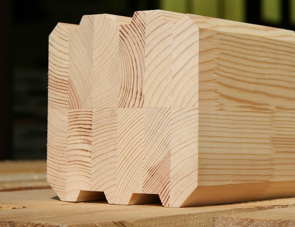 - Клееный брус. Материал склеен из досок с помощью клеящего вещества. Слои располагаются перпендикулярно друг другу и поэтому геометрия клееного бруса более стабильная, он мало усаживается и не коробится. Клееный брус можно отнести к наилучшим материалам. Дома из него очень прочные, теплые, долговечные. Строятся быстро, отделывать снаружи и внутри можно сразу после возведения коробки.